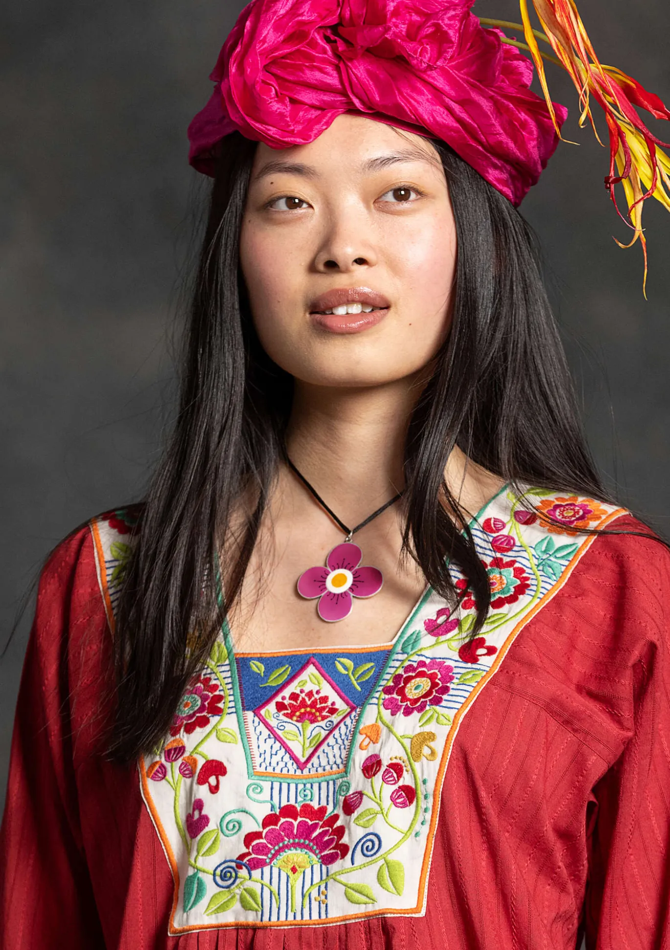 Exklusiver, hübsch emaillierter Kettenanhänger in Blütenform, aus 925er-Sterlingsilber. 62 cm lange Schnur mit Silberverschluss. Verpackt in einem kleinen Stoffbeutel.