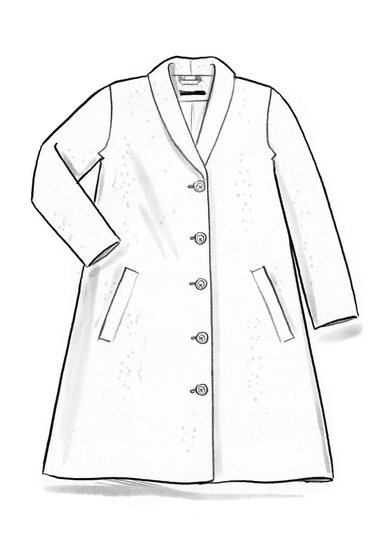 Mantel mit Schalkragen, Teilfutter und hübsch unregelmäßiger Struktur dank Bouclégarn. Einfarbiges Modell mit praktischen Taschen.