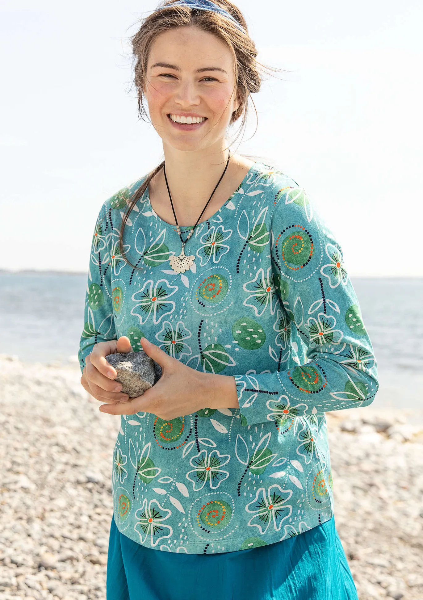 Digital bedrucktes Shirt in fließender Aquarelloptik. Langarmmodell mit rundem Ausschnitt.