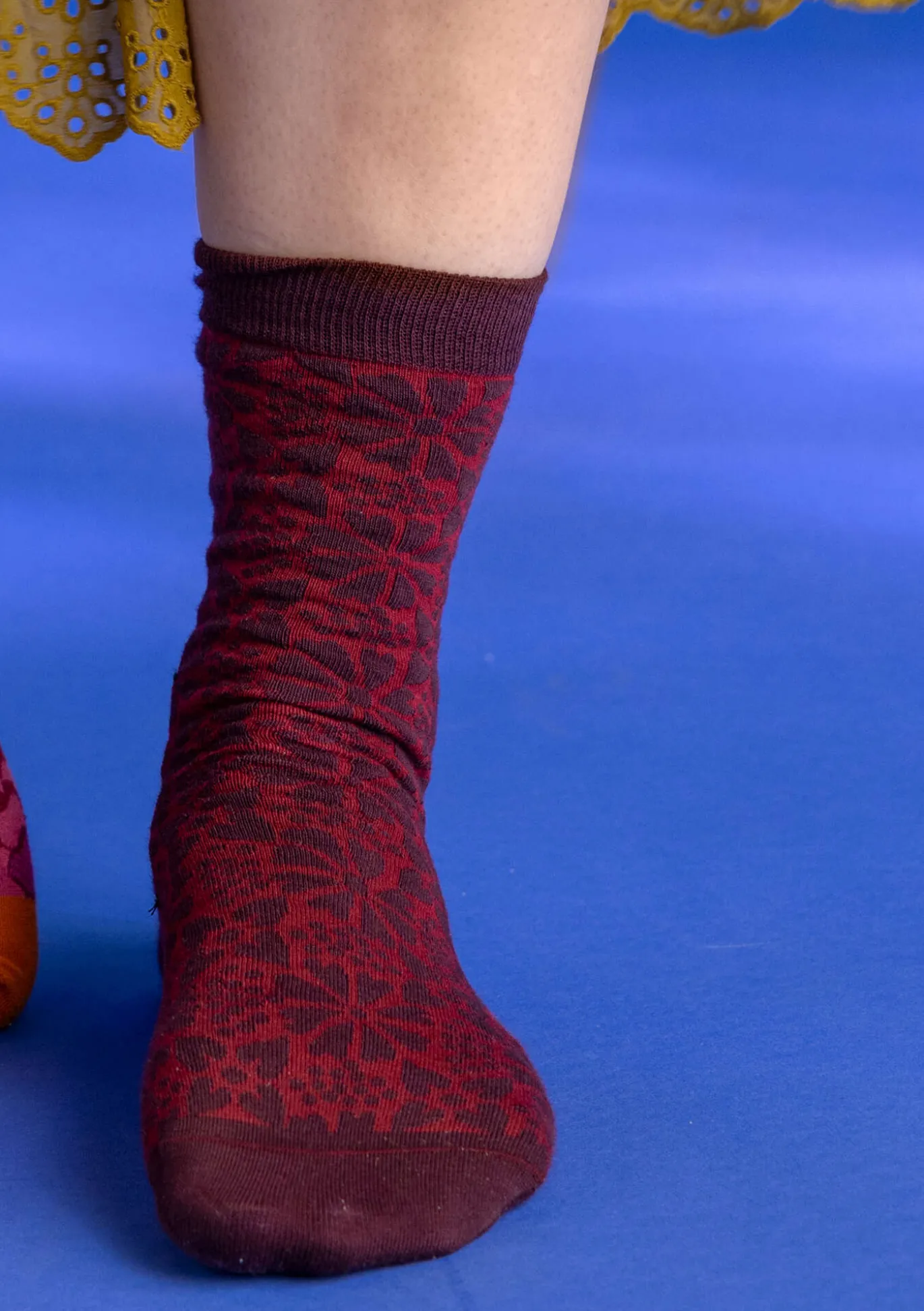 Socken mit folkloristischen Blumen im Grafikstil. Weiches, bequemes Rippbündchen.