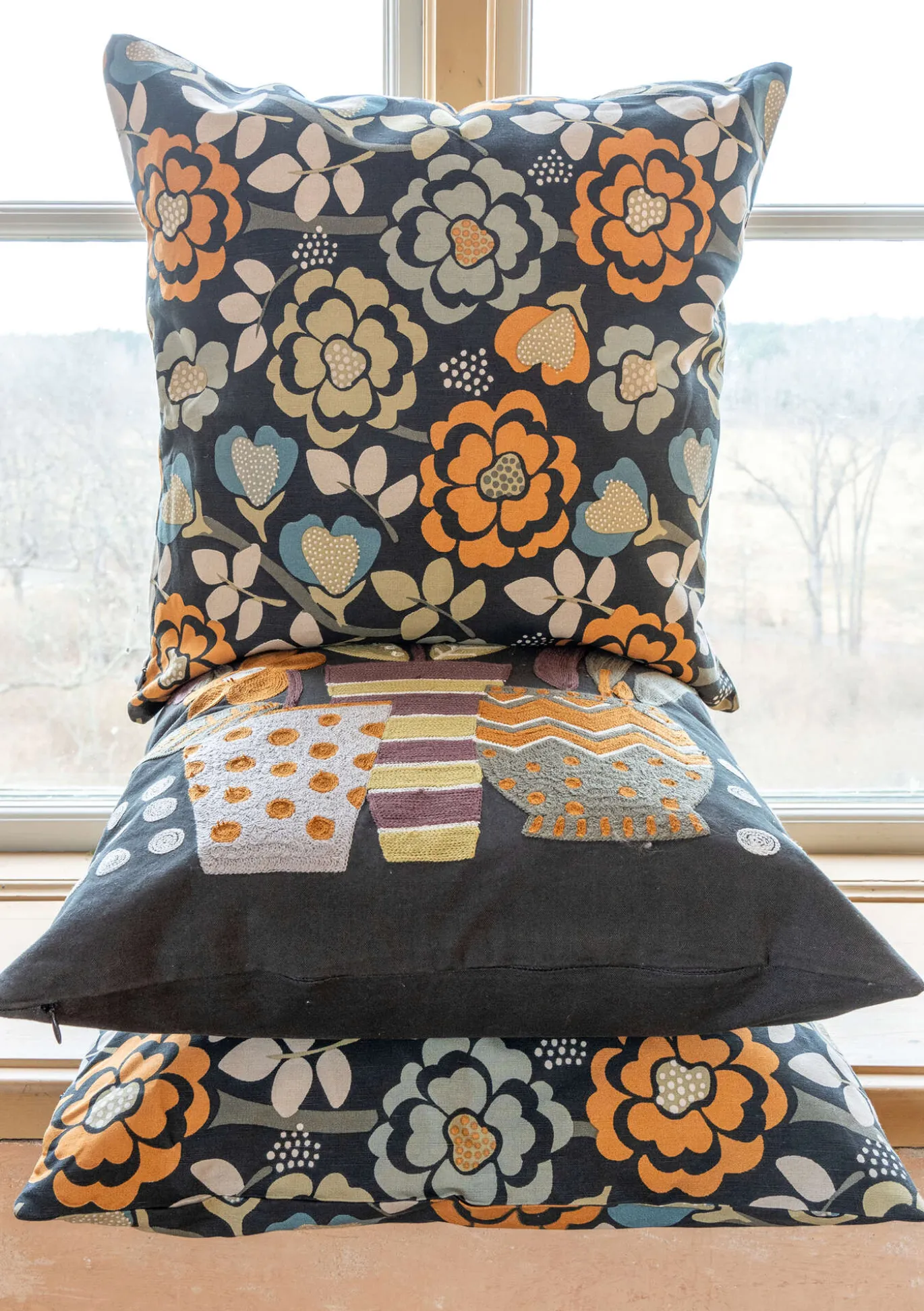 Kissenhülle mit floralem Musterdruck. Vorgewaschenes kräftiges Bio-Baumwollgewebe mit weich patinierter Optik. Verdeckter Reißverschluss unten.