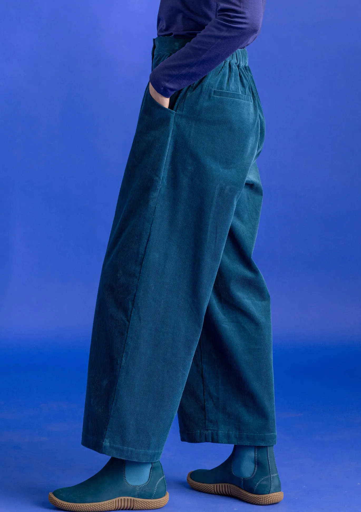 Knöchellanges Modell aus einer schönen Cordqualität. Hervorragende Passform und Haltbarkeit dank Elasthanbeimischung. Seitentaschen und eine Po-Tasche. Vorne mit Knopf zu schließen. Dehneinsatz hinten im Bund.