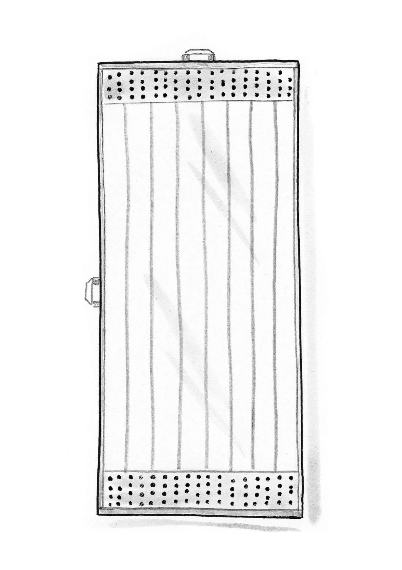Duschhandtuch mit Streifen und Punktebordüren. Kontrastierende Kanten und Aufhänger an der Stirn- und Längsseite.