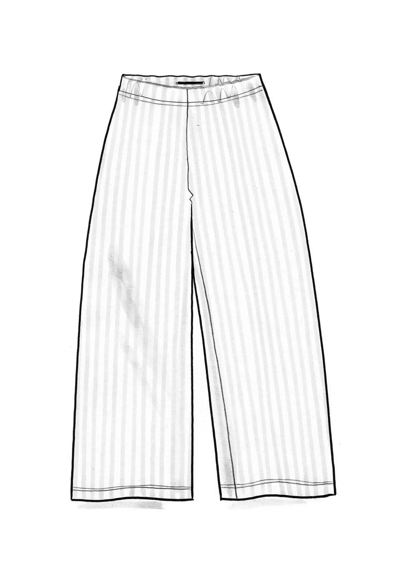 Lange Jerseyhose mit schöner Beinweite und bequemem Dehnbund. Längsstreifen dank geänderter Stoffrichtung.
