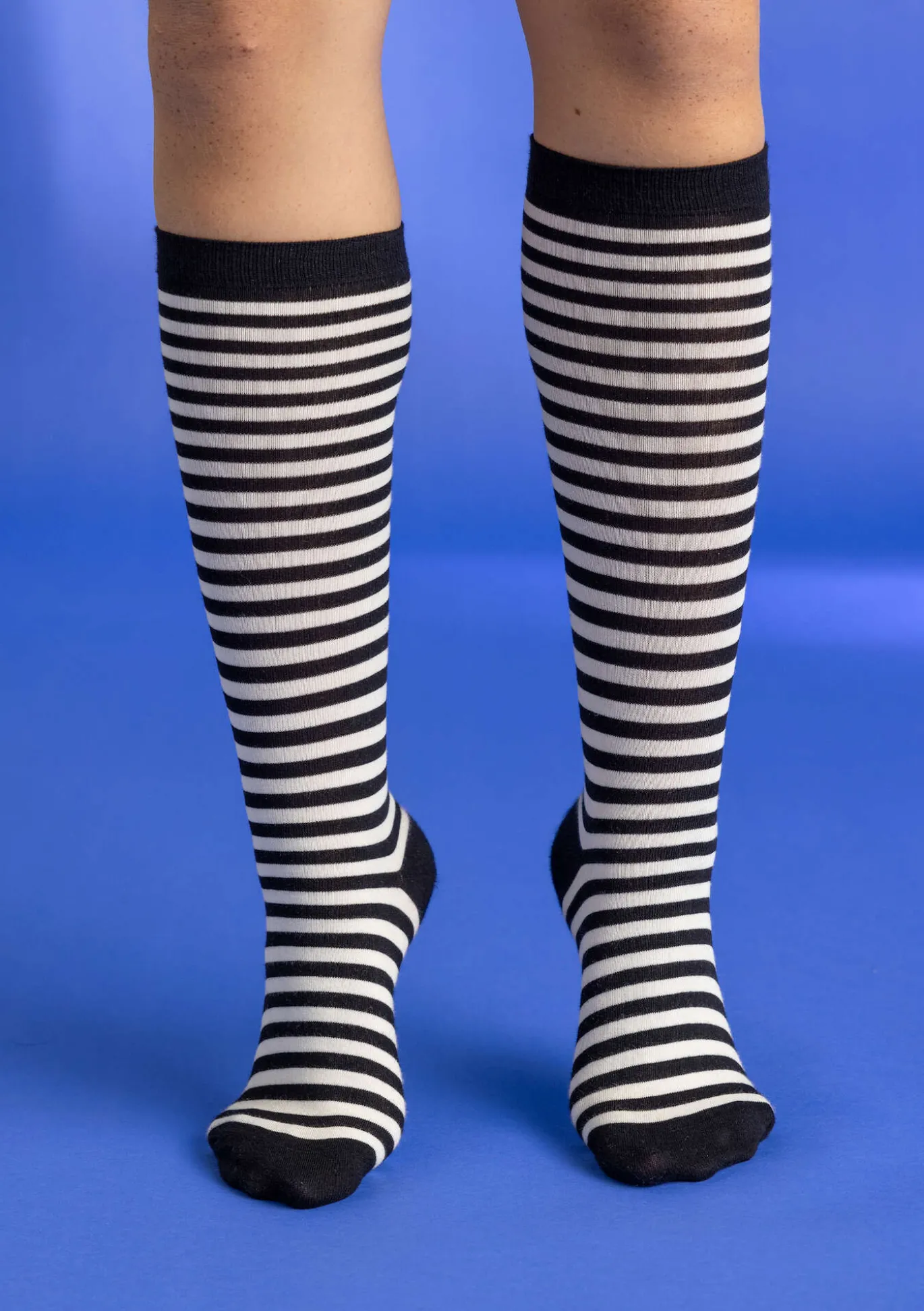 Gestreifte Kniestrümpfe mit bequemem Rippbündchen. Vielseitig tragbare Farbkombinationen.