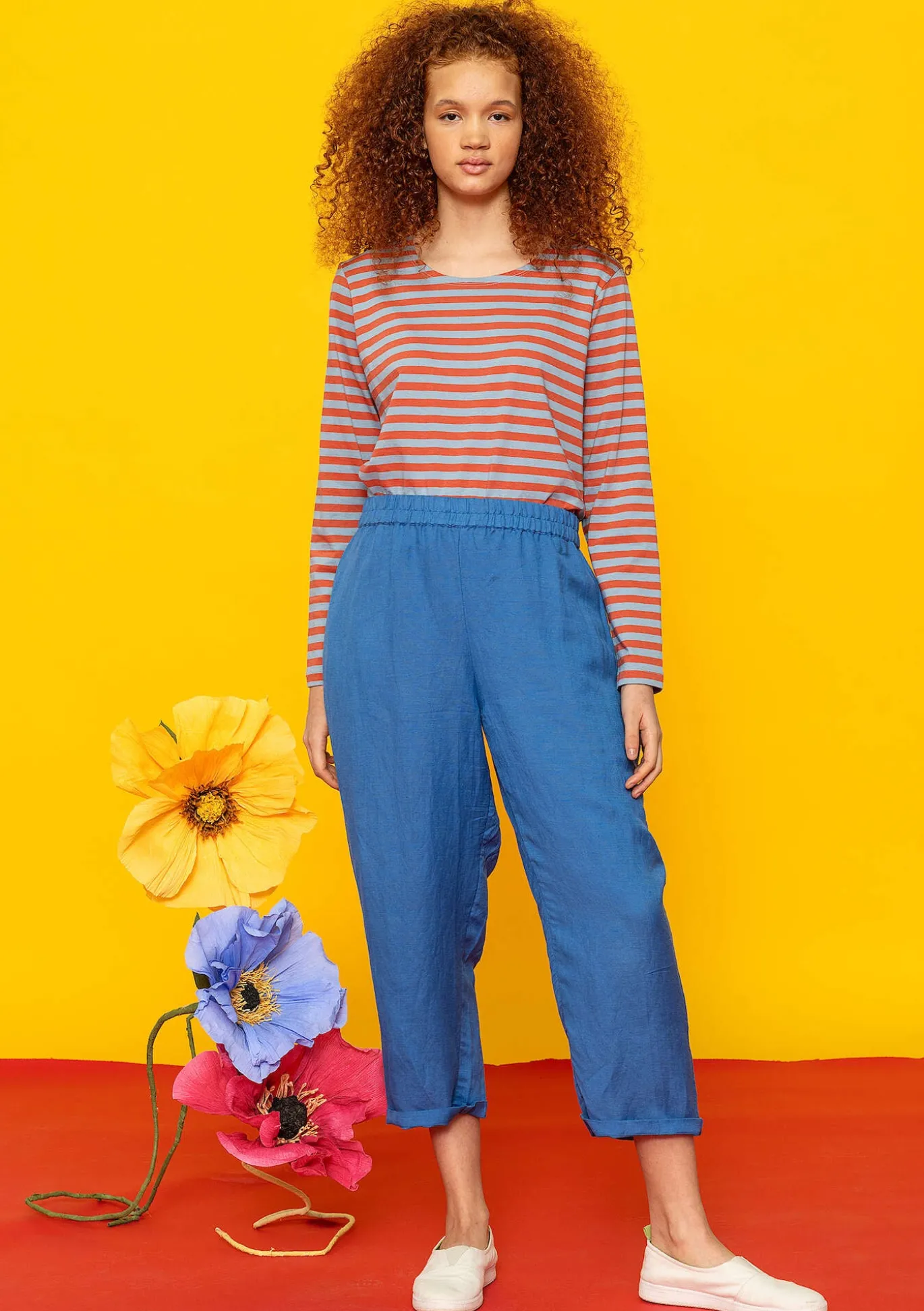 Knöchellange Hose mit innen liegendem Gummizug im Bund und Seitentaschen.